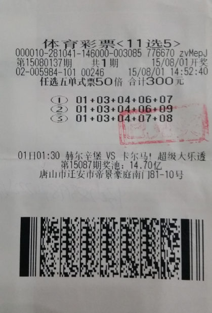 8月5日一大早,唐山中心迎来了一位满面红光的大叔,虽未说话,却透着挡不住的喜悦,一看就知道是来兑奖的。接过彩票一看“50倍任选五”。笔者看的出来该彩民判断准确,下手果断。