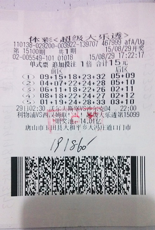 玉田超级大乐透彩民与一等奖擦肩而过