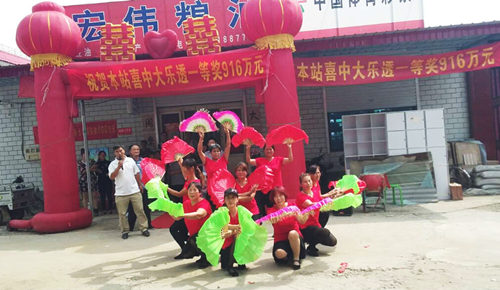 开业之初,她一方面按照中心要求进行开业布置;另一方面在村内发放传单,通知左邻右舍前来捧场,进行了红红火火的开业仪式,并且进行了增票活动,因此,体彩站一开张,彩民就络绎不绝,销售收到了良好的效果。在得知自己的站点中出大乐透一等奖916万元时,王女士十分的兴奋,表示一定要好好宣传,第二天一大早就开始准备。庆祝活动布置了拱门、鞭炮、条幅、红毯,秧歌队随着动感的音乐舞动起来,现场气氛热烈,活动收到良好效果。王女士表示,为了加强宣传,她将进行至少一周的增票活动,每日放炮进行庆祝,拱门长期支放使用,希望自己的体彩站通过本次大乐透一等奖能够有一个更大的提升。(保定中心崔东)