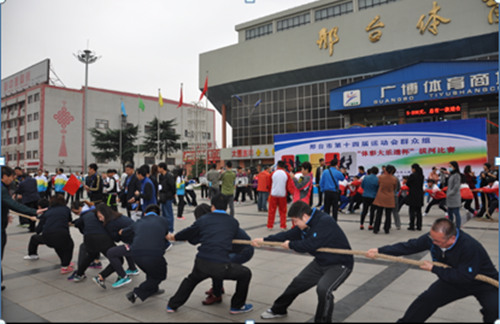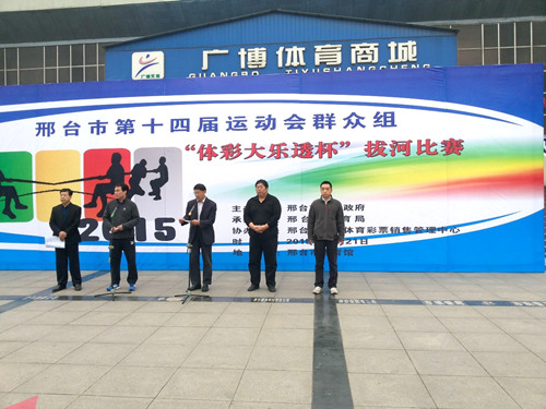 2015年10月21日,由邢台市人民政府主办、邢台市体育局承办、邢台体彩中心协办的《邢台市第十四届运动会群众组“体彩大乐透杯”拔河比赛》在邢台市体育馆广场隆重举行。邢台体育局局长何洪锐、体彩中心常务副主任张苏云等出席开幕式。