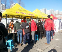 秦皇岛体彩中心组织销售代表参加户外销售,借此机会宣传公益体彩。主会场的音乐和即开“顶呱刮”宣传音频由体彩中心工作人员提供,成为当天最具影响力音频。原本冷冷清清的摊位,当“顶呱刮”宣传音频一播出,不到十分钟就吸引很多的参赛选手。我们准备了二十多款“顶呱刮”即开型彩票。当天是新票“赤壁”和“富贵8”促销的最后一天,这两个票种成为今天最抢眼的招牌票,运动员借着等待比赛的空闲时间都忍不住跑来试试运气。