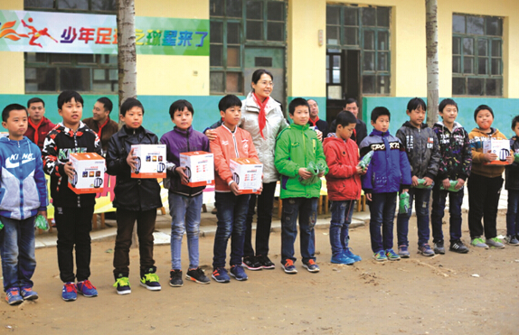 在首先进行的公益体彩·少年足球——“球星来了”启动仪式上,活动的主办方河北省体育彩票管理中心为学校精心准备了过冬的物资,烧水壶、保温杯、手套等,希望可以在寒冷的冬季为孩子和老师们送去温暖。收到礼物的孩子们,脸上都洋溢着幸福与快乐。