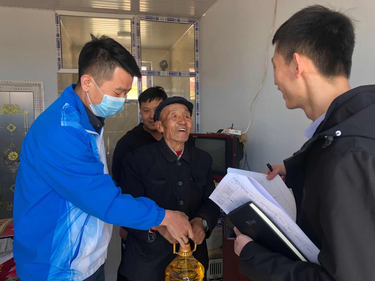 随后,在村干部的带领下,对结对贫困户进行逐一的走访慰问。在入户走访慰问的过程中,向贫困户送上了食用油等慰问品,与他们亲切交谈,了解他们的近期情况,听取他们的心声,并鼓励他们要积极面对生活。