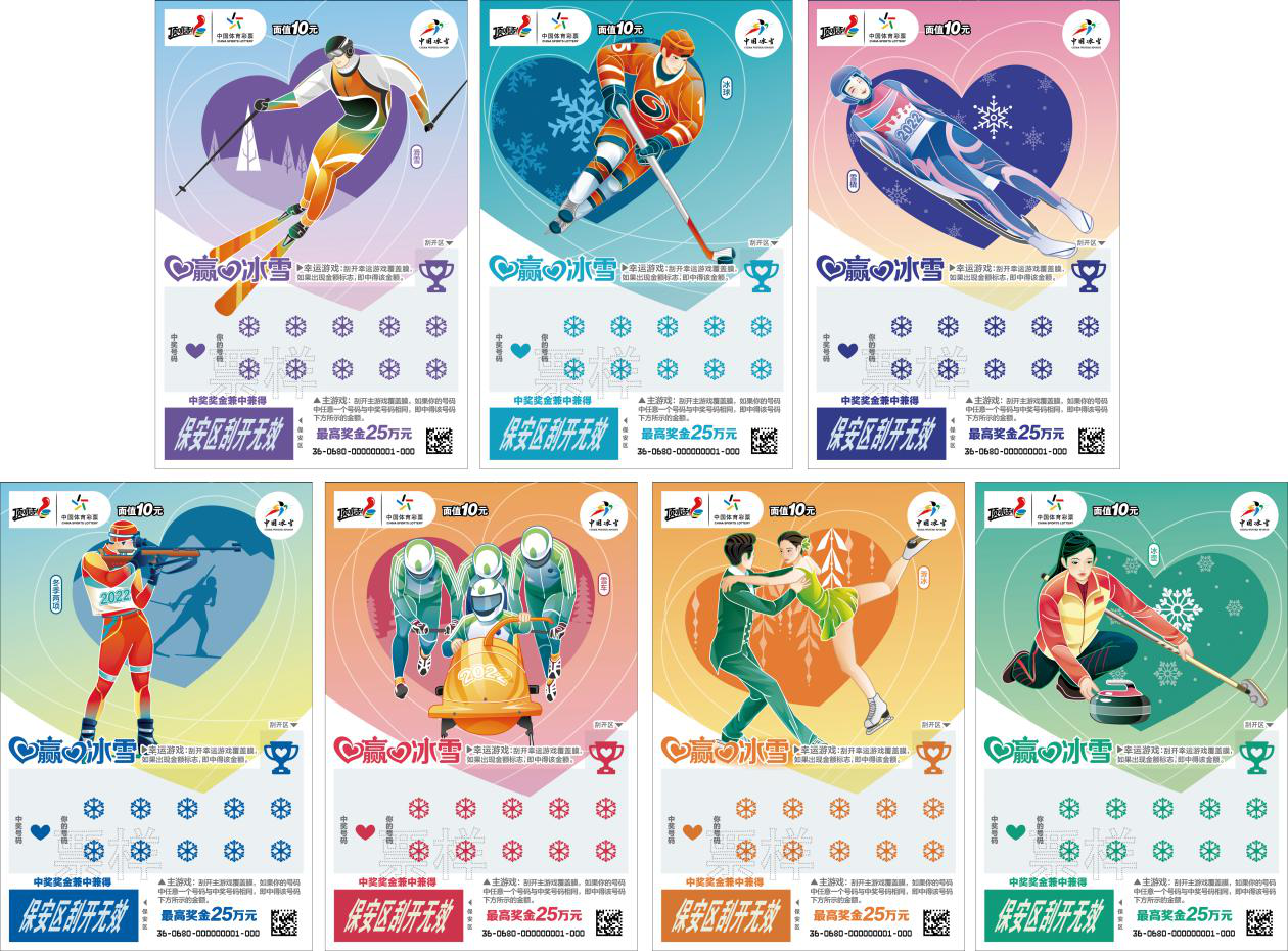 10元面值的“爱赢爱冰雪”即开彩票,共有七个场景的票面,以冰雪运动七大项目运动形象与心形图案巧妙结合,诠释爱赢爱冰雪的主题。该款票种有11次中奖机会,奖级侧重中小奖,最高奖金25万元。