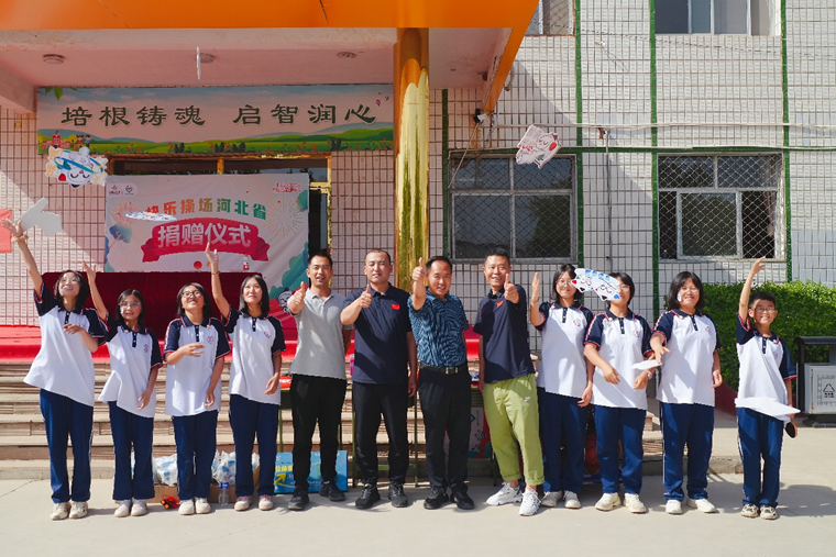 6月8日,保定易县高陌初级中学迎来了一堂特殊的“体育科”,同学们脸上贴着爱心标识,胸前别着体彩 “乐小星”的徽章,和校领导一起拔河、跳绳、打乒乓球……