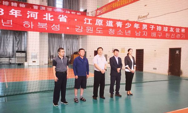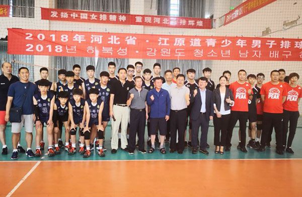 据悉此次参加交流的韩国江原道男子排球队,队员平均年龄只有15岁,但实力不容小觑,是当地中学排球队中排名前三的一支队伍。河北省体育运动技术学校则派出了排球青年组队员应战,双方实力旗鼓相当,上演了一场精彩的比赛。