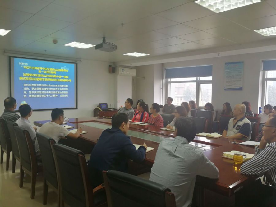 会上首先学习了习近平总书记在中央全面依法治国委员会第一次会议上的重要讲话精神,了解了全面依法治国的重要意义,明确了中央全面依法治国委员会的顶层设计及工作要点等重大部署。之后观看了纪录片《法治中国》的第一集《奉法者强》,片中讲述了习近平总书记不论是在地方主政还是担任中央总书记,对法治的重视和推进一以贯之,都将依法治国放在至关重要的地位,为中国梦护航。习近平总书记关于依法治国的重要思想,代表了中国共产党人一直以来对法治矢志不渝的追求,也是对中国历史王朝更迭、治乱循环的睿智洞察。