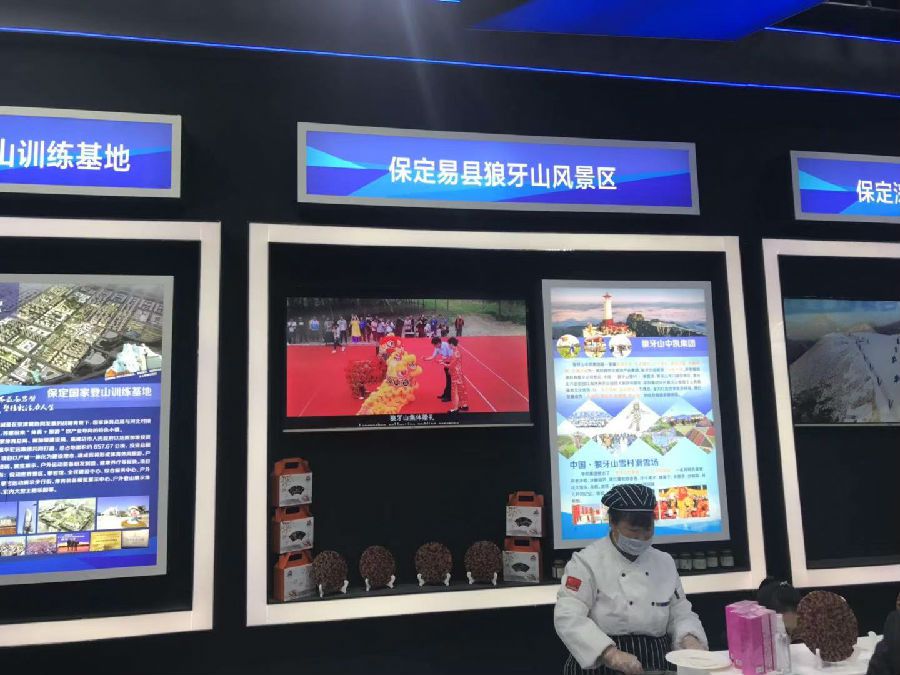 保定易县狼牙山雪村展区负责人介绍说,狼牙山是河北著名红色旅游景点,借助京津冀协同发展优势,狼牙山雪村整合开发后,拥有约80万平方米的场地,既满足了大众旅游需求,还填补了保定冰雪旅游的空白。迄今,雪村已经承办过“2017-2018健康河北欢乐冰雪”活动启动仪式、京津冀第三届滑雪比赛、“燃情冰雪,助力奥运”中国狼牙山国际单板比赛等大型雪季赛事活动,展示了我省体育旅游与体育文化融合发展的力量。