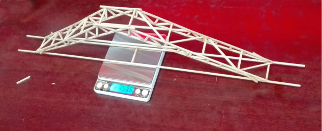 、省教育厅等五厅局主办的河北省模型运动锦标赛,继而冲击全国青少年航模赛金牌,2016年6月15日张家口市宣化六中组织了全校木结构桥梁承重选拔赛,全校百余名科技活动积极分子报名参加了本次比赛。比赛规则要求运动员选用统一规定的截面2.5毫米见方的松木条,搭建总质量不超过22克,符合规定尺寸的桥梁,并以所载重量大小来评定成绩,多者优胜。经过紧张、激烈的角逐,该校初二一班的岳巍同学以用料15.94g、桥梁承重40公斤的成绩,夺得全校选拔赛冠军。