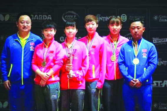 2017世界青少年乒乓球锦标赛于北京时间12月3日晚在意大利里瓦德尔加尔达落幕,中国队派出男、女共8名运动员参赛,包揽团体、单打、双打、混双全部7个冠军。我省小将孙颖莎代表中国队出战,除以优异表现帮助队伍获得团体冠军外,还收获了单打和双打两枚金牌。