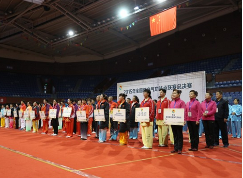 2015年11月25日-27日,2015年全国健身气功站点联赛总决赛在浙江杭州举行。本次总决赛共有来自北京、河北、内蒙古、江苏、浙江等21支代表队120人参与健身气功易筋经、五禽戏、六字诀、八段锦4个项目的角逐。这120人历经为期9个月的省区市预赛、两场(北部、南部)分区半决赛,在30个省市区69支代表队的310人中胜出,代表了我国2万6千多健身气功站点200多万习练者的最高水平。