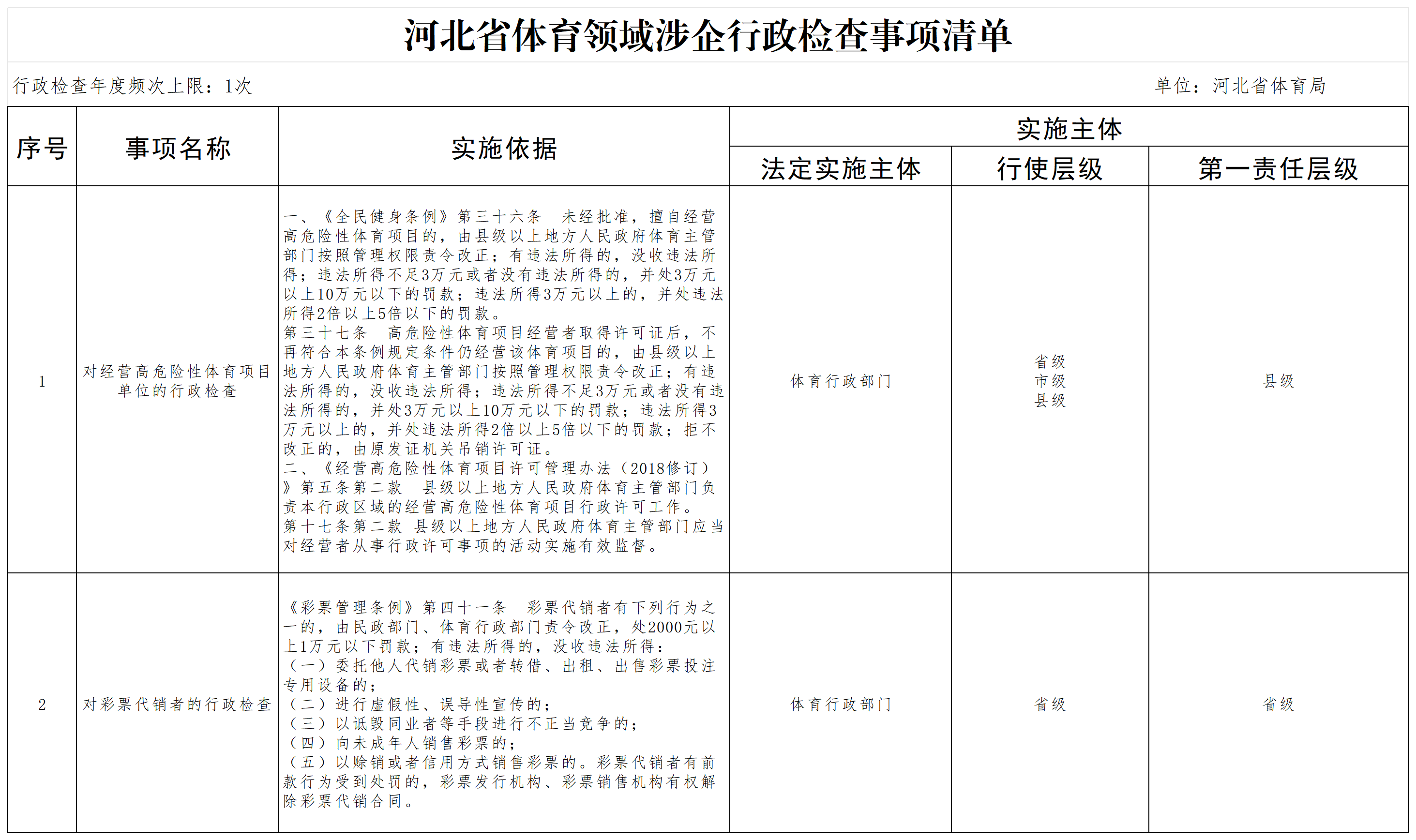 河北省体育领域涉企行政检查事项清单