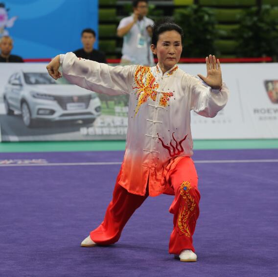 河北选手王艳萍在女子组规定武式太极拳46式比赛中斩获金牌