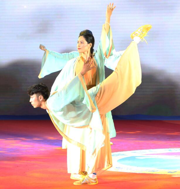 河北队此次的作品编排取自神话故事《女娲补天》,精彩的自编套路配合以鲜明的LED动态背景,仿佛为观众们讲述了一个动人的故事,一个又一个完成出色的难度动作赢得了观众的阵阵掌声。最终,本场比赛第一个出场的河北队便赢得了9.28分的高分。
