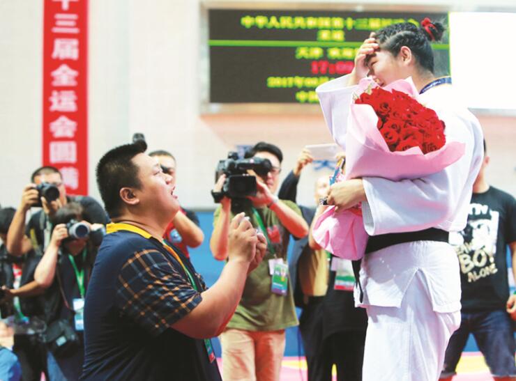 幸福时刻(女子柔道正78公斤级冠军李扬赛后被求婚)