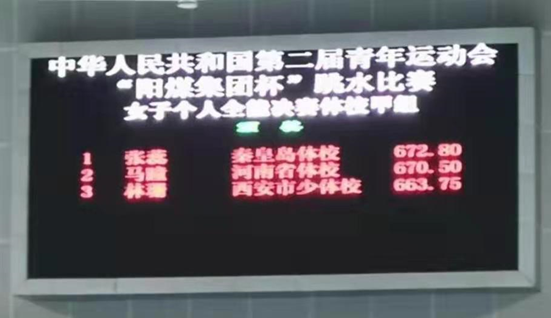 7月30日,正在山西体育中心游泳馆进行的第二届全国青年运动会跳水比赛进入第三个比赛日的争夺。我省跳水运动员张蕊以总分672.80分夺得女子个人全能冠军。