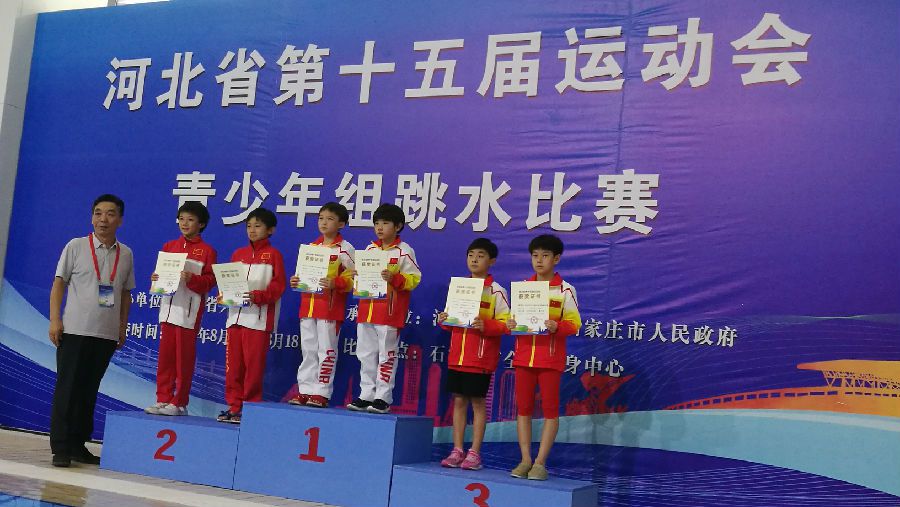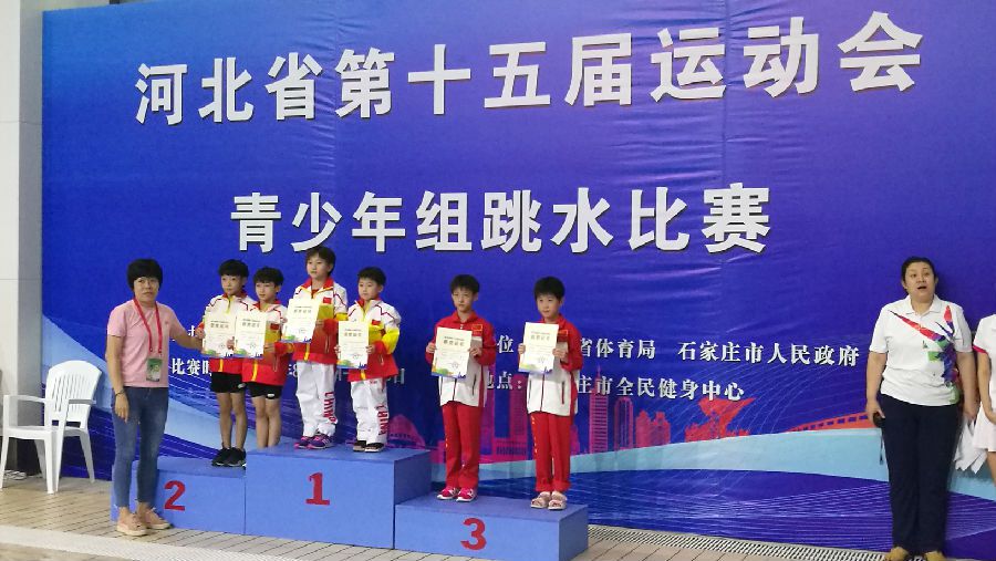 2018年8月16日,河北省第十五届运动会青少年组跳水决赛进入第二个比赛日的争夺,共决出男女甲组双人跳台、男女乙组双人跳台、男女甲组单人跳台、男女丙组双人跳台、男女乙组三米跳板10枚金牌,其中石家庄获得4枚,保定获得3枚,沧州获得2枚,秦皇岛获得1枚。