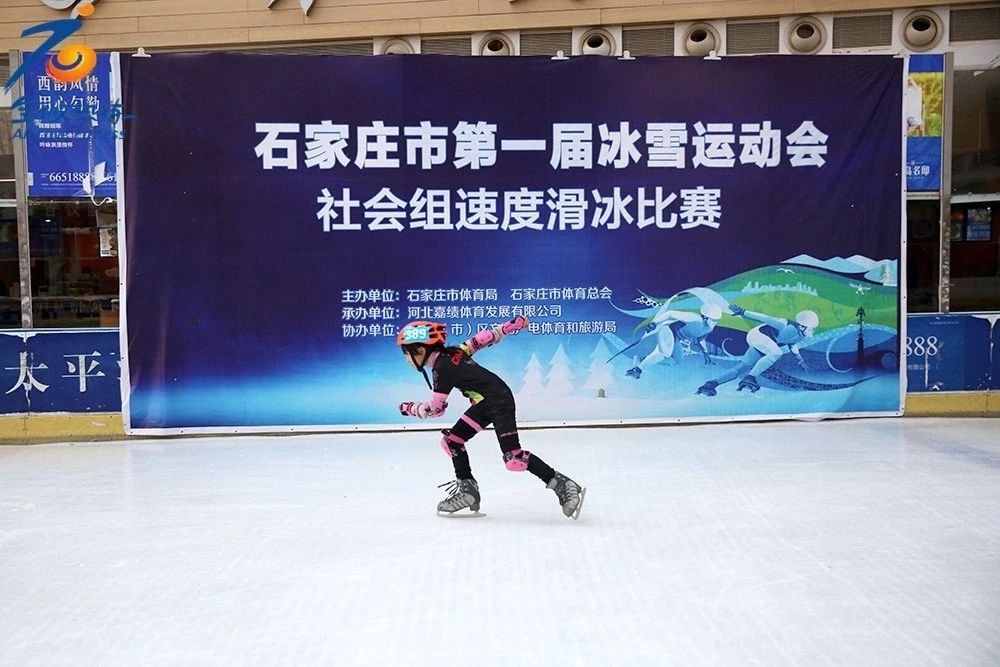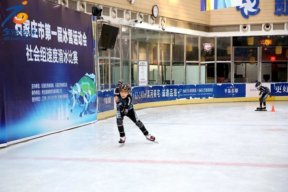 石家庄市第一届冰雪运动会社会组速度滑冰比赛今日进行