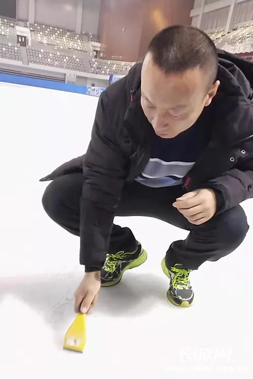 说起制冰过程,孙鹏如数家珍:一块标准的冰场2公分的底冰,喷白,最后一层是面冰……“对于一块冰场来说,它的滑度、平整度、光洁度都是十分重要的因素。检验一块冰场是否标准,要看运动员试滑时能否达到自身训练时的最好成绩。”孙鹏说。