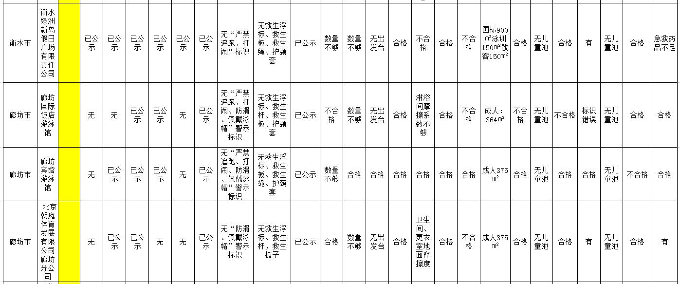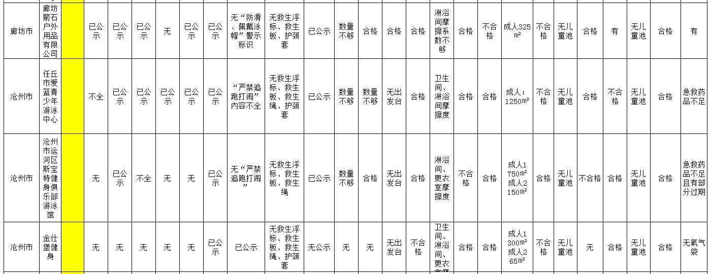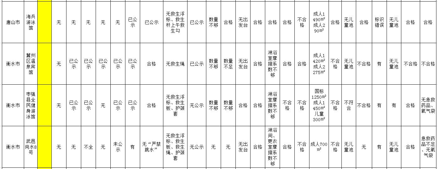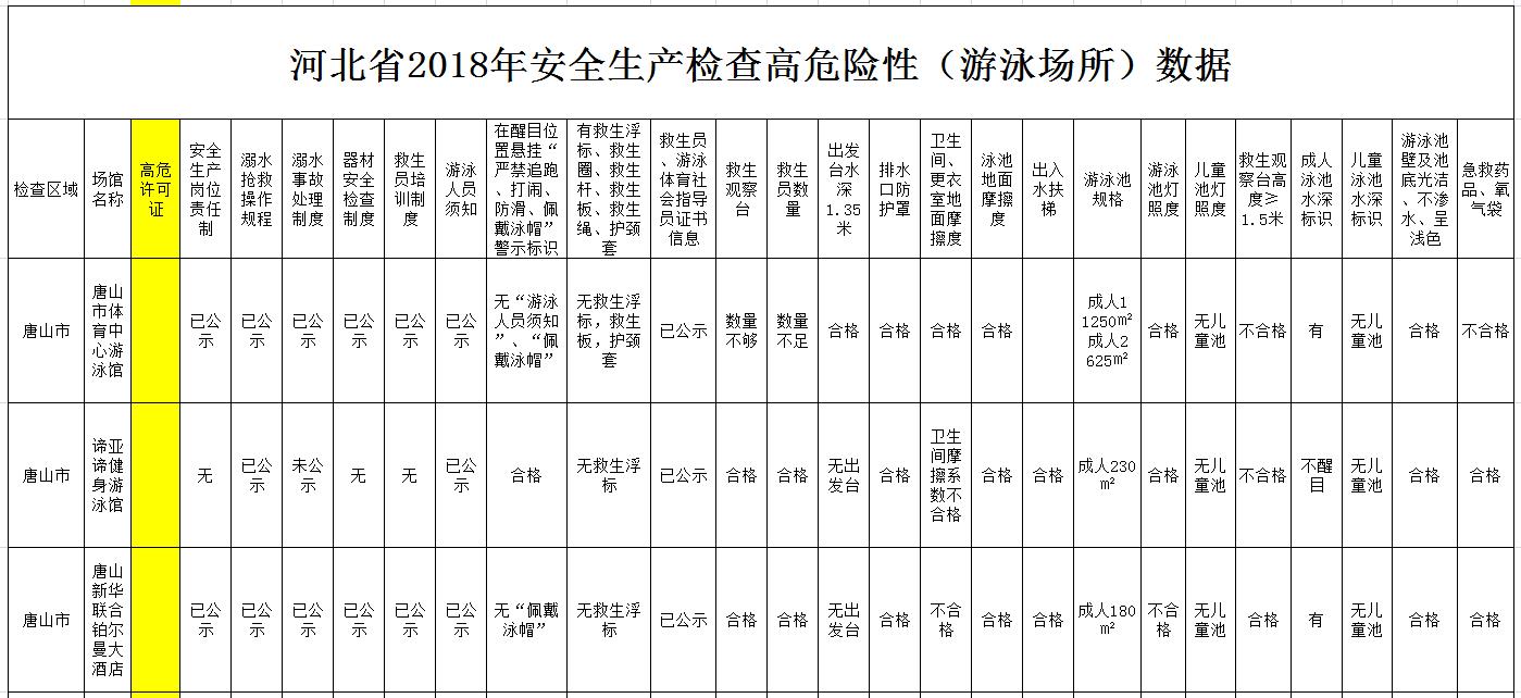河北省2018年安全生产检查高危险性(游泳场所)数据