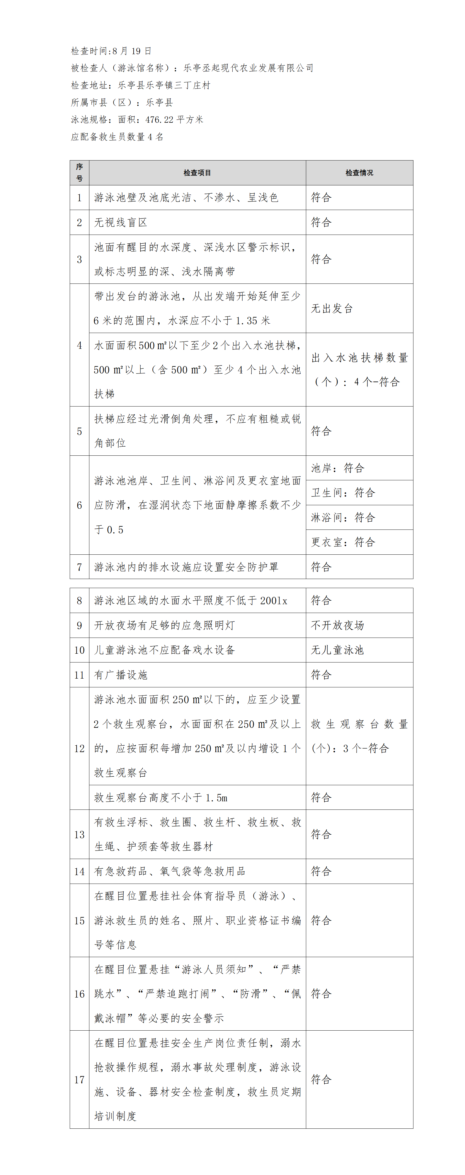 河北省游泳馆双随机安全检查结果公示