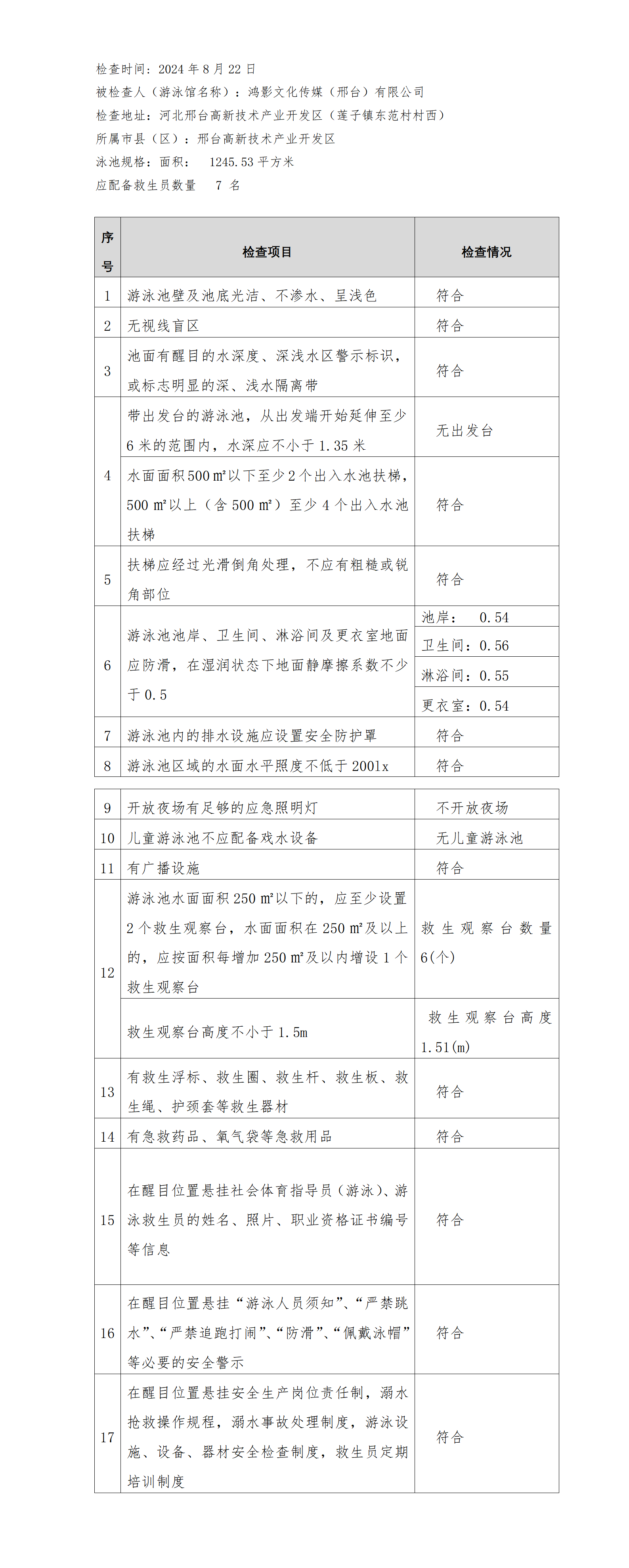 河北省游泳馆双随机安全检查结果公示