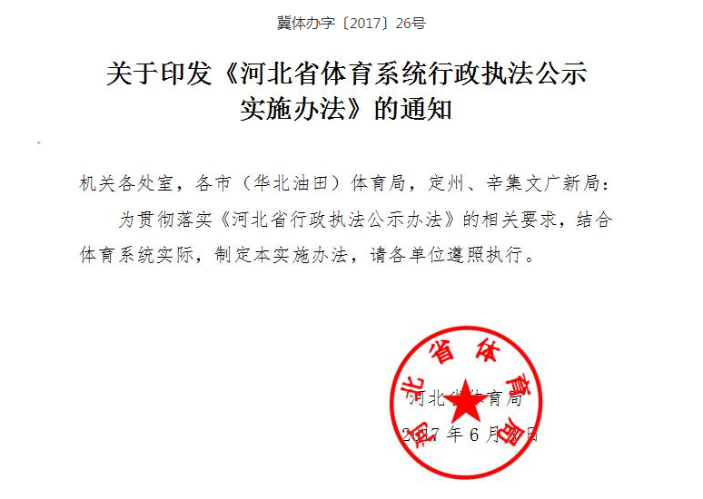 关于印发《河北省体育系统行政执法公示实施办法》的通知
