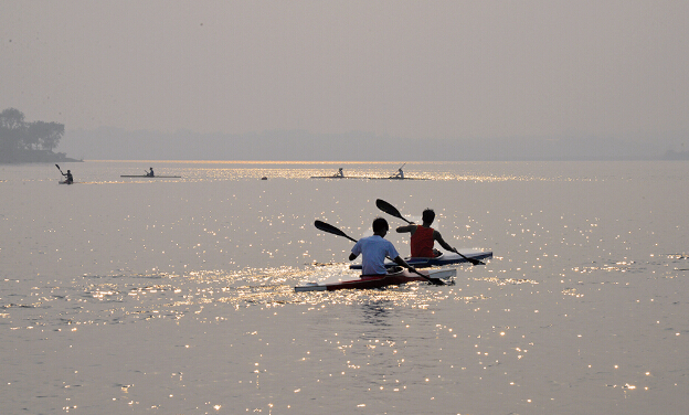 九月的蟠龙湖波光粼粼,碧波荡漾。一群朝气蓬勃的少年扬着笑脸,舞动着手中的桨,在平静的水面上划出一道道漂亮的波纹。他们正是今年水上中心首批集训的苗子队员,同样,他们也代表着我省水上运动明日的希望。